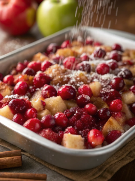 Enjoy tart cranberries and sweet apples in this easy holiday casserole. Perfect for festive dinners or desserts with just 4 ingredients. Try today!