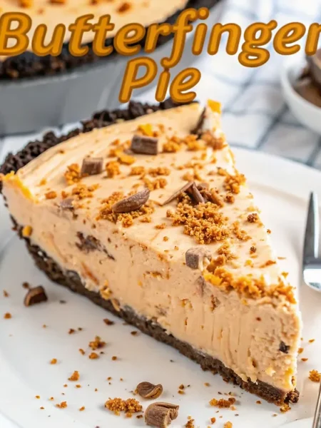 Indulge in a cool, creamy Butterfinger Pie with a chocolate crust—no baking required! Try today and enjoy this easy, decadent treat.