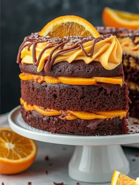 Indulge in a rich chocolate orange pound cake with cream cheese batter and dark chocolate chunks. Perfect dessert with citrus zest infusion. Try today!