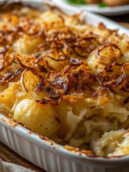 Discover the ultimate French Onion Funeral Potatoes recipe! This easy comforting side dish combines creamy hash browns with crispy onion topping. Perfect for potlucks and family gatherings. Try today!