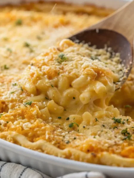 Creamy five-cheese macaroni bake perfect for gatherings. Ready in 25 minutes with mozzarella, Swiss, Parmesan, provolone, and ricotta. Try today!