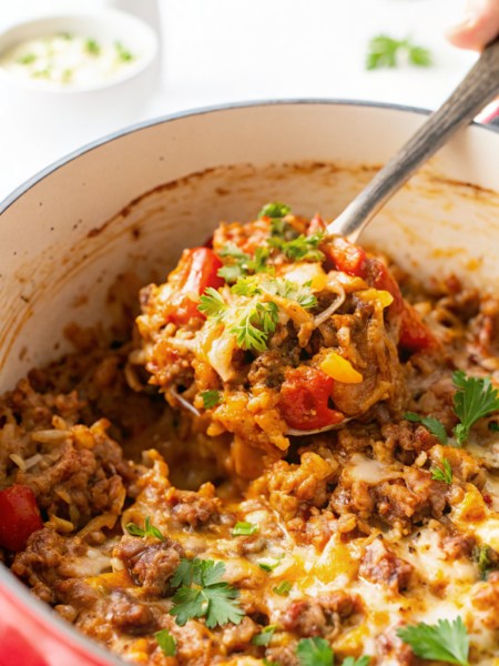 Discover the ultimate Stuffed Pepper Casserole, an easy one-pot meal with ground beef, rice, and melty cheese. Perfect for a cozy weeknight. Get recipe today!