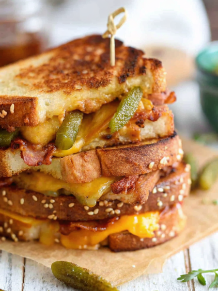 Discover the ultimate Dill Pickle Beef Bacon Grilled Cheese! Crispy beef bacon, gooey cheese, and crunchy dill pickles create the perfect sandwich. Try today!
