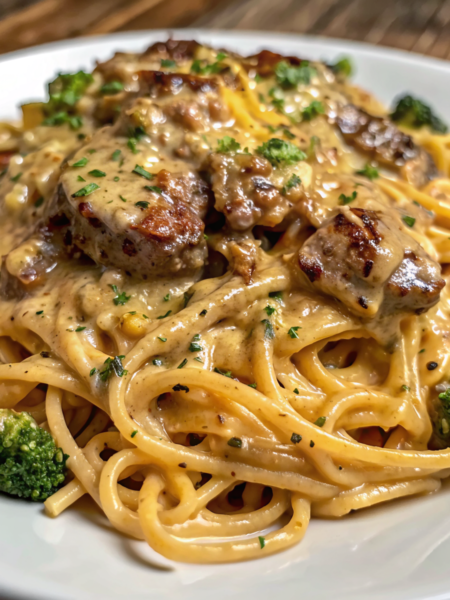 Creamy 4-ingredient pasta with sausage and Boursin cheese ready in minutes. Perfect hearty comfort food for busy nights. Try today!