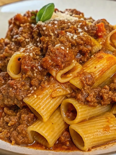 Indulge in tender shredded beef ragu with pappardelle pasta. Slow-cooked perfection for a hearty dinner. Try today!