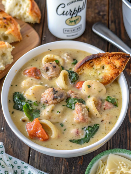 Warm up with this creamy Tortellini Soup packed with sausage, kale, and tender pasta. Ready in 35 minutes! Try today for a hearty meal.