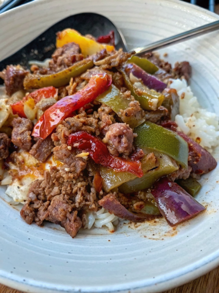 Savor the flavors of this easy Beef and Peppers Skillet with a savory sauce. Perfect over rice! Try today for a quick family meal.
