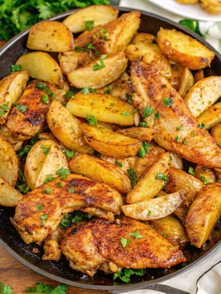 Discover this easy Garlic Butter Chicken and Potatoes recipe! A delicious one-skillet dinner with simple ingredients and incredible flavor. Try today!
