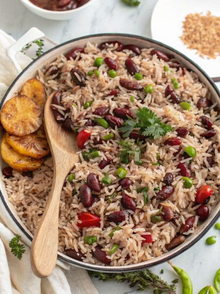 Authentic Jamaican rice and peas with coconut milk and spices. Perfect side dish full of flavor. Try this easy recipe today!