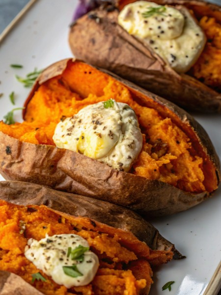 Traeger Smoked Sweet Potatoes with Roasted Garlic Butter