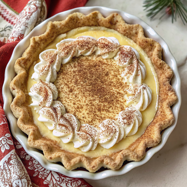 The inspiration for this Christmas Eve Cinnamon-Vanilla Creamy Custard Pie Recipe came from observing how candlelight dances across a perfectly smooth custard surface during holiday gatherings. The golden palette mirrors the warm glow of Christmas lights, while the cinnamon speckles create a constellation effect that feels both rustic and refined. The geometric precision of the fluted crust edge provides architectural interest that frames the organic, flowing custard like a beautiful picture frame, creating visual harmony that’s both sophisticated and comforting.
