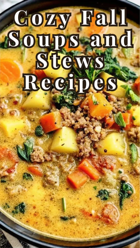 Beverage Companions: Hot apple cider, spiced tea, or sparkling water with cranberry ice cubes complement these cozy fall soups and stews beautifully, enhancing the seasonal experience.