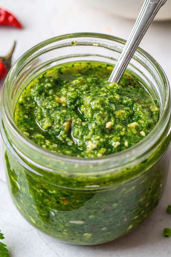 - The specific blend of cilantro, parsley, and Middle Eastern spices creates a unique flavor profile and distinctive bright green color that sets it apart from chimichurri or pesto.