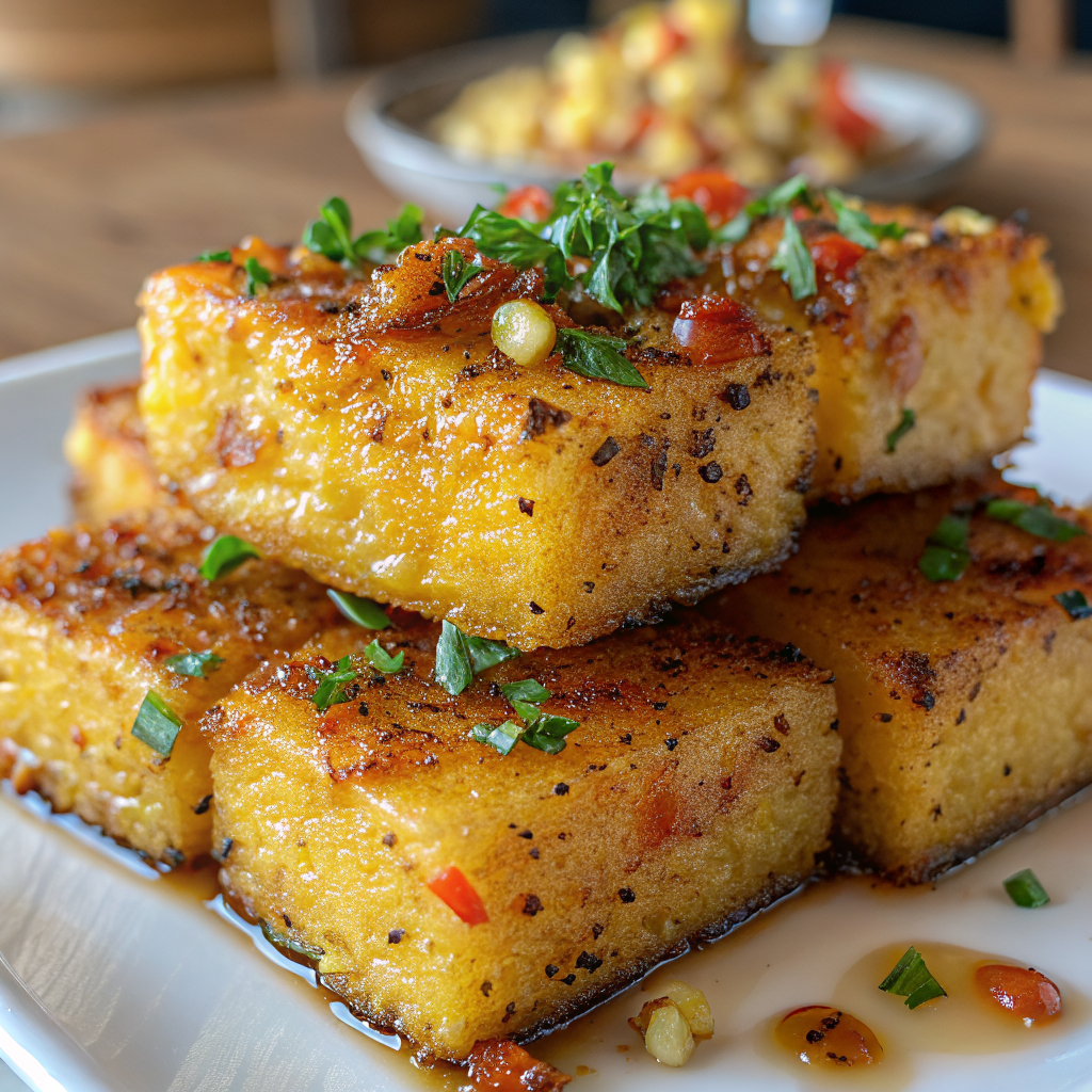 The inspiration for this honey butter cornbread came from observing how sunlight filters through amber glass—that warm, golden glow that makes everything look more beautiful. I wanted to capture that same luminous quality in a cornbread that would look as stunning as it tastes. The geometric precision of perfectly cut squares contrasts beautifully with the rustic, homestyle appeal, creating a dish that feels both sophisticated and comforting. The honey butter glaze was designed to mimic the way morning light catches on polished wood, adding depth and richness to every surface.