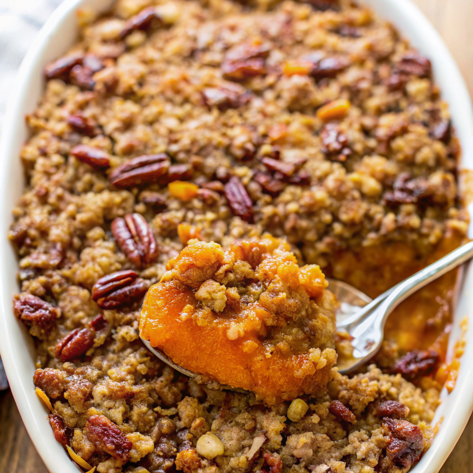 Sweet Potato Casserole with Butter Pecan Crumble Topping