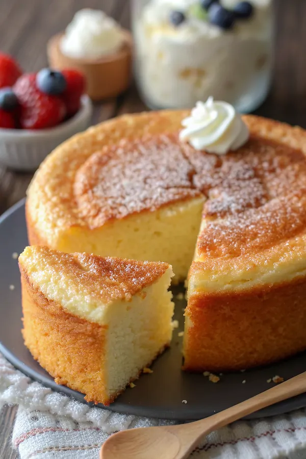 Serve slices with fresh berries and whipped cream for classic elegance, or dust with powdered sugar for simple sophistication. Fresh fruit compotes, lemon curd, or chocolate ganache transform this basic sponge into restaurant-quality desserts. For beverages, pair with Earl Grey tea, fresh coffee, or sparkling fruit juices that complement the cake’s delicate vanilla notes.